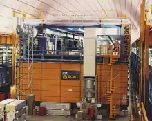 The MACRO project included a large cavern, approximately 800 metres underground, which was further hollowed out and housed hundreds of long chambers filled with scintillating fluid – a fluid that gives off photons when a charged or magnetic particle passes through it. At opposing ends of the chamber were a pair of photomultiplier tubes. Photomultiplier tubes contain a number of small charged "plates". They look like flood lights, but they are collectors that can take a handful of photons and "multiply" them. This multiplication begins by using the photo-electric effect to convert photons that hit the first "plate" into electrons. These electrons are then attracted to the next plate which gives off more electrons that it receives. The next plate does the same, thus amplifying the signal more at each plate. The photomultipliers used in the MACRO experiment were produced by Thorn-EMI, and were sensitive to a signal as small as five photons. After decommissioning, MACRO donated about 800 photomultiplier tubes to the Daya Bay Reactor Neutrino Experiment. The exact voltage put on each plate was determined by a custom circuit board designed by some of the scientists involved with the project.