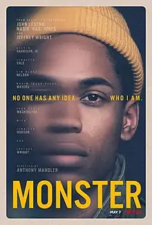 Monster is a 2018 American legal drama film directed by Anthony Mandler, from a screenplay by Radha Blank,[1] Cole Wiley, and Janece Shaffer, based on the novel of the same name by Walter Dean Myers. It stars Kelvin Harrison Jr., Jennifer Ehle, Tim Blake Nelson, Nas, ASAP Rocky, Paul Ben-Victor, John David Washington, Jennifer Hudson, and Jeffrey Wright. Wright, Nas, and John Legend also serve as executive producers on the film.