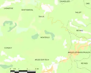 Montbolo is located in the canton of Le Canigou and in the arrondissement of Céret.