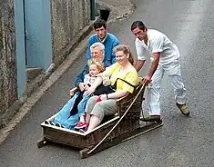 The toboggan drivers do not always wear the uniform, but ferry tourists downhill at high speeds