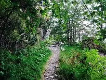 Glimpse of the "Calva Trail" in the Vestino Valley, now consisting of a former military mule track from the Great War