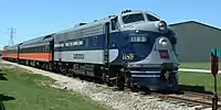 ![]() A museum tourist train, being led by Wabash Railroad F7A #1189, rests in front of the Nelson's Crossing depot. | |
