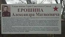 On May 9, 1972 Tank T-34 was installed at the entrance to the settlement of Matveev Kurgan in honor of the 27th anniversary of the end of the Great Patriotic War in memory of the feat of the tankmen of the 44th Army that participated in the liberation of the village Matveev Kurgan in February 1943. After the defeat of the German fascist troops at Stalingrad, the Soviet Army began the offensive in many directions. On February 14, 1943, the troops of the Southern Front liberated Rostov-on-Don. The task was to come to the river Mius by February 17, to occupy the district centre of Matveev Kurgan and the heights on the western bank of the Mius. Thus, the residents of Matveev Kurgan immortalized a feat of the Hero of the Soviet Union, lieutenant Alexander Matveevich Eroshin (he began his glorious military career as the commander of the tank T-34), the tank commander of the 37th Guards Tank Regiment, he was the first who at high speed broke into the night of February 17, 1943 on a tank in the village and started the battle for its liberation. Guard - Lieutenant Eroshin A.M. didn’t allow the enemy to blow up the railway bridge over the Oktyabrskaya street. The crew of the tank destroyed more than a company of the enemy in this battle. In 1968 Eroshin A.M. was given the title of "Honorary Citizen of the Settlement of Matveev Kurgan". Until his last days he kept in touch with residents of the district. Eroshin A.M. died in May 2003. He was buried in Moscow.