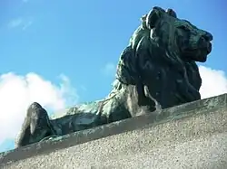 Closer view of the lion atop the memorial