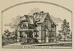 The house was built as a mirror image of the house as it was depicted in the booklet cited above. It still stands, with the tower and gingerbread porch removed.