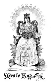 Furthermore, since the late 20th century, some feminists have also adopted Morgan as a representation of female power or of a fading form of feminine spirituality supposedly practised by the Celts or earlier peoples.[18] These interpretations draw upon the original portrayal of Morgan as a benevolent figure with extraordinary healing powers.[18] According to Leila K. Norako, "in addition to her appearances in literature, television, and film, Morgan le Fay is also frequently mentioned in the context of neo-pagan religious groups. She is alternately worshipped as a goddess, hailed as a symbol of feminine power, and adopted as a spiritual name." This development was attributed to the influence of The Mists of Avalon, a revisionist retelling of the legend from a feminist and pro-pagan perspective.[19][20] People who have been named or named themselves specifically after Arthurian figure of Morgan include Morgana Le Fay O'Reilly[21] and Elizabeth Le Fey.[22] Norako wrote: