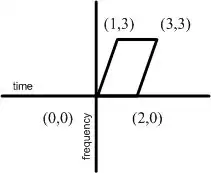 The following examples assume time in the horizontal axis versus frequency in the vertical axis. As a coincident, the following transformations happen to have the motion properties in the time-frequency distribution.