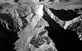 Columbia Peak and Mt. Defiant (centered) with Great Nunatak in lower right. (from south)