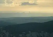 Mount Ebal (Hebrew: הַר עֵיבָל Har ʿĒyḇāl; Arabic: جَبَلُ عَيْبال Jabal ‘Aybāl) is one of the two mountains in the immediate vicinity of the city of Nablus in the West Bank (biblical Shechem), and forms the northern side of the valley in which Nablus is situated, the southern side being formed by Mount Gerizim.[1] The mountain is one of the highest peaks in the West Bank and rises to 935 m (3,068 ft) above sea level, some 60 m (200 ft) higher than Mount Gerizim.[2] Mount Ebal is approximately 17 km2 (6.6 sq mi) in area,[2] and is composed primarily of limestone.[3] The slopes of the mountain contain several large caverns which were probably originally quarries,[3] and at the base towards the north are several tombs.[4]