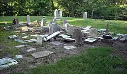 Mount Zion Cemetery/Female Union Band Society Cemetery is a historic cemetery located at 27th Street NW and Mill Road NW in the Georgetown neighborhood of Washington, D.C., in the United States.[2] The cemetery is actually two adjoining burial grounds: the Mount Zion Cemetery and Female Union Band Society Cemetery. Together these cemeteries occupy approximately three and a half acres of land. The property fronts Mill Road NW and overlooks Rock Creek Park to the rear. Mount Zion Cemetery, positioned to the East, is approximately 67,300 square feet in area; the Female Union Band Cemetery, situated to the West, contains approximately 66,500 square feet. Mount Zion Cemetery, founded in 1808 as The Old Methodist Burial Ground, was leased property later sold to Mount Zion United Methodist Church. Although the cemetery buried both White and Black persons since its inception, it served an almost exclusively African American population after 1849. In 1842, the Female Union Band Society purchased the western lot to establish a secular burying ground for African Americans. Both cemeteries were abandoned by 1950.