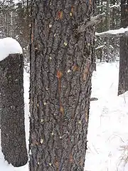 A lodgepole pine tree with a pitch tube