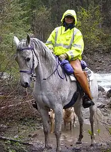 A search and rescue horse is a horse trained and used to perform mounted search and rescue. In many cases, the horse is simply a means of transportation for a SAR responder. In other cases, the horse is a full member of the SAR field team. Like a SAR dog, a SAR horse can be trained to search for lost persons, using its keen senses of hearing, scenting, and vision.[10] In addition, some mounted SAR responders work a SAR dog from horseback.
