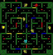 Mouse Trap is a maze video game developed by Exidy and released in arcades in 1981. It is similar to Pac-Man, with the main character replaced by a mouse, the dots with cheese, the ghosts with cats, and the energizers with bones. After collecting a bone, pressing a button turns the mouse into a dog for a brief period of time. Color-coded doors in the maze can be toggled by pressing a button of the same color. A hawk periodically flies across the maze, unrestricted by walls.