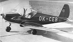 The Czechoslovak aircraft factory Mráz introduced several new sport aircraft after World War II. One of them was the M-2 Skaut, designed by Zdeněk Rublič, who later designed the Aero L-29 Delfín trainer jet. His aim was to design an easily flyable and reliable aircraft for basic club pilot training, with moderate operating costs and requiring little maintenance. To simplify production, the wing and tail from his earlier, successful M-1C Sokol design[1] was used. The prototype, first flown in mid-1948, showed that the Skaut was a stable and safe aircraft, pleasantly controllable and with a good field of view. These characteristics together with a side-by-side cockpit and a tricycle landing gear made it a promising civil trainer aircraft. However, the new communist government nationalised the Mráz factory and directed it to produce military aircraft, so only the prototype Skaut was completed in the 20th century.[2]