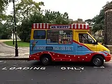 Mr. Whippy (or Mister Whippy) is a brand of soft-mix ice cream produced by Wall's, a subsidiary of Unilever as part of the Heartbrand. Mr. Whippy began as a franchise of ice cream operators, but is now just the name of the soft-mix ice cream, as such, many ice cream vendors selling the soft-mix brand themselves as "Mr. Whippy" and stylise their vehicles and outlets as they wish. Actual franchises of the brand continue separately in Australia and New Zealand.[1]