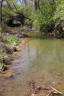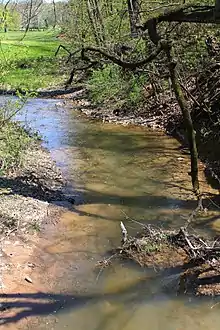 The stream banks of Muddy Run are eroded in some locations.[4] The elevation of the creek at its mouth is 429 feet (131 m) above sea level.[5]