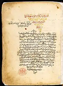 Realising the significance of efficient religious preaching (da'wa), Ibn 'Abd al-Wahhab called upon his students to master the path of reasoning and proselytising over warfare to convince other Muslims of their reformist endeavour.[92] Between 1744 and 1746, Ibn 'Abd al-Wahhab's preaching continued in the same non-violent manner as before and spread widely across the people of Najd. Rulers of various towns across Najd pledged their allegiance to Ibn Suʿūd. This situation changed drastically around 1158/1746; when the powerful anti-Wahhabi chieftain of Riyadh, Dahhām ibn Dawwās (fl. 1187/1773), attacked the town of Manfuha which had pledged allegiance to Diriyah. This would spark a nearly 30-year long between Diriyah and Riyadh, which lasted until 1187/1773, barring some interruptions.[93] First conquering Najd, Muhammad ibn Saud's forces expanded the Wahhabi influence to most of the present-day territory of Saudi Arabia,[33] eradicating various popular practices they viewed as akin to polytheism and propagating the doctrines of ʿAbd al-Wahhab.[33][94]