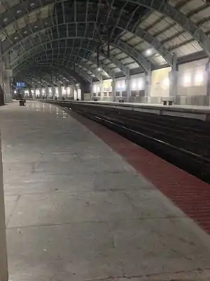 The station is an elevated one built on the banks of the Buckingham Canal like most other MRTS stations. The station building consists of 2,400 sq m of parking area in its basement.[1] The design of the station is similar to that of the Thirumailai station. The station has only one entrance as the Buckingham Canal runs alongside.[4]