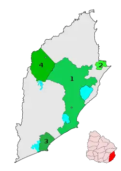 | 1 | Castillos | 9,651 | 2,152.6 km2 | Juan Manuel Olivera (PN) | 15 March 2010 |
