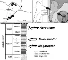 Murusraptor ("wall thief") is a genus of carnivorous megaraptoran theropod dinosaur from the Sierra Barrosa Formation, part of the Neuquén Group of Patagonia, in Argentina, South America. It is known from a single specimen that consists of a partial skull, ribs, partial pelvis, leg and other assorted skeletal elements.[1]