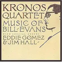 Music of Bill Evans is a studio album by the Kronos Quartet, containing compositions written by or associated with Bill Evans. With Jim Hall (guitar) and Eddie Gómez (bass).[1][2] Leonard Feather gave the album five stars;[3] Stephen Holden, for the New York Times, named it "Jazz Album of the Week."[4][5] Reissued with Monk Suite: Kronos Quartet Plays Music of Thelonious Monk on 2CD as 32 Jazz: The Complete Landmark Sessions.