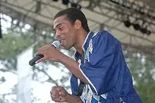 Fuji has been described as jùjú without guitars; ironically, Ebenezer Obey once described jùjú as mambo with guitars.[23] However, at its roots, fuji is a mixture of Muslim traditional were music' ajisari songs with "aspects of apala percussion and vocal songs and brooding, philosophical sakara music";[24] Of these elements, apala is the fundamental basis of fuji[25] The first stars of fuji were the rival bandleaders Alhaji Sikiru Ayinde Barrister and Ayinla Kollington[26] Alhaji Sikiru Ayinde Barrister started his fuji career in the early 1970s with the Golden Fuji Group, although he had sung Muslim songs since he was 10 years old. He first changed his group's name to "Fuji Londoners" when he came back from a trip to London, England. After a very long time with hits such as "Orilonise", "Fuji Disco/Iku Baba Obey", "Oke Agba", "Aye", and "Suuru" he changed the group's name to "Supreme Fuji Commanders". Ayinde's rival was Ayinla Kollington or "Baba Alatika", known for fast tempo and dance-able brand of fuji, who also recorded hit albums like "ko bo simi lo'run mo e, in the '80s he released "ijo yoyo, Lakukulala and American megastar" to mention few of his successful albums. With all due respect Ayinla Kollington is a coherent social commentator. He was followed in the 1980s by burgeoning stars such as Wasiu Ayinde Marshall.