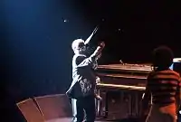 Progressive or 'prog rock' developed out of late 1960s blues-rock and psychedelic rock. Dominated by British bands it was part of an attempt to elevate rock music to new levels of artistic credibility.[3] Progressive rock bands attempted to push the technical and compositional boundaries of rock by going beyond the standard verse-chorus-based song structures. The arrangements often incorporated elements drawn from classical, jazz, and world music. Instrumentals were common, while songs with lyrics were sometimes conceptual, abstract, or based in fantasy. Progressive rock bands sometimes used "concept albums that made unified statements, usually telling an epic story or tackling a grand overarching theme."[3] King Crimson have been seen as the band who established the concept of progressive rock". The term was applied to the music of bands and artists such as Yes, Genesis, Pink Floyd, Jethro Tull, Kate Bush, Soft Machine, and Emerson, Lake & Palmer.[3] It reached its peak of popularity in the mid-1970s, but had mixed critical acclaim and the punk movement can be seen as a reaction against its musicality and perceived pomposity.