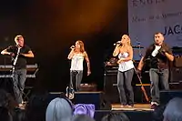 Folk punk or rogue folk is a fusion of folk music and punk rock, or occasionally other genres, which was pioneered by the London-based Irish band The Pogues in the 1980s. It achieved some mainstream success in the 1980s and, particularly as the subgenre of Celtic punk, has been widely adopted in areas of the Celtic diaspora in North America and Australia and by many bands in continental central and eastern Europe. Unlike earlier Celtic rock and electric folk groups, folk punk groups tend to include relatively little traditional music in their repertoire, but instead usually performed their own compositions, often following the form of punk rock, using additional folk instrumentation, including, mandolin, accordion, banjo and particularly violin.[18] Other bands adopted some traditional forms of music, including sea shanties and eastern European gypsy music. Among the most successful performers were The Levellers,[18] and singer-songwriter Billy Bragg, who enjoyed a series of hits in the 1980s.[19]
