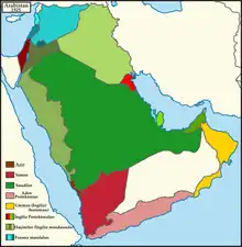 In 1924, al-Jawf and Bayda tribes rebelled. Thereupon, Imam Yahya sent the New Army led by Sayyid Abdullah al-Wazir to suppress the rebellion. After establishing his authority over the tribes, Imam Yahya, who wanted to benefit from the struggle for the throne that emerged in the Emirate of Asir after the death of Muhammad ibn Ali al-Idrisi in 1923, captured Hudaydah with troops consisting of tribal members, most of whom were from the Hashid tribe.[45] A number of shrines, considered saints by the inhabitants of Hudaydah, were destroyed by Imam Yahya's army during these conflicts.[46] While Hudaydah was captured, al-Jawf tribes rebelled and the rebellion ended after a short conflict. Then he headed towards Sabya and besieged al-Idrisi's son Ali bin Idrisi. In 1926, the Imam's army raided tribes that did not recognize him in Jizan and Najran[47] Ali bin Idrisi He pledged his allegiance to Imam Yahya on condition that he recognized him as the ruler of Southern Asir But Imam Yahya rejected this offer, claiming that the Idrisis were of Moroccan origin. According to Imam Yahya; Along with the British, the Idrisians were nothing but intruders and had to be permanently expelled from Yemen.[48] This policy was negotiated with the United Kingdom and the Kingdom of Hejaz and Nejd under their pressure. caused him to have problems.[49] In 1926, A dispute broke out between the Kingdom of Hejaz and Nejd and Yemen over the territorial sharing of Najran.[50]
