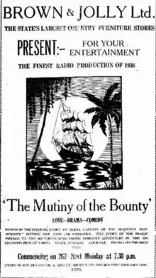 Mutiny on the Bounty is a 1938 Australian radio serial about the Mutiny on the Bounty. It was written by Anthony Scott Veitch and directed by Harvey Adams, who also starred.[2]