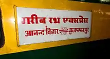 ![]() Anand Vihar Terminal–Muzaffarpur Garib Rath Express nameplate | |