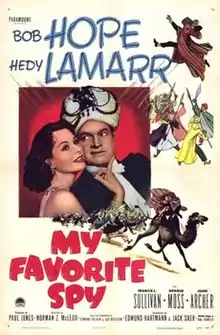 My Favorite Spy is a 1951 American comedy spy film directed by Norman Z. McLeod and starring Bob Hope, Hedy Lamarr and Francis L. Sullivan. It was produced and distributed by Paramount Pictures and forms the third of a loose trilogy featuring Hope including My Favorite Blonde and My Favorite Brunette.