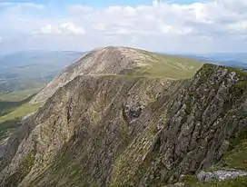 The summit is bare and rocky and marked with a cairn. The north face like Cadair Idris has large cliffs. To the east is a lower broad plateau topped by the summit of Gau Graig.[1]