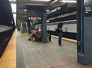 The Myrtle–Wyckoff Avenues station on the BMT Canarsie Line (originally named Myrtle Avenue station) is an underground station has two tracks with an island platform.