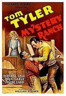 Mystery Ranch is a 1934 American comedy Western film co-produced and directed by Bernard B. Ray and starring Tom Tyler, Roberta Gale and Jack Perrin.[1] It was Tyler's first of 18 films for Reliable Pictures.