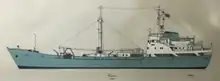 New Zealand research vessel R.V. Taranui from original drawing by Murray Robinson.