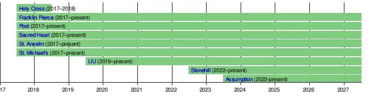 - ↑ Assumption joined for administrative purposes in 2022, but did not start NEWHA play until 2023.