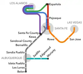 Currently, Park and Ride operates six routes in its northern network,[4] two routes on its southern network,[5] and two local routes in Santa Fe to connect passengers to the Rail Runner.[6]