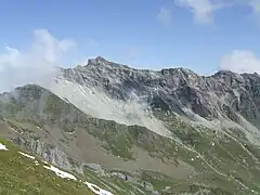 The Naafkopf is a mountain in the Rätikon range of the Alps, located at the border between Austria, Liechtenstein and Switzerland.[2] The summit tripoint is marked with a large wooden cross supported on a brick base extending in three directions.