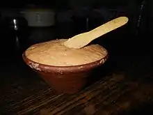 Nabadwip-er lal doi (Bengali: নবদ্বীপের লাল দই transl. Red curd of Nabadwip), also known as Kheer doi or Chakku doi, is one of the most famous types of confectionery in the Bengal region of the Indian subcontinent, originating in present-day West Bengal, India. Though curd is usually white, red curd is a distinct type of confectionery. Red curd of the Nadia's Nabadwip type is very popular.[1] Kali Ghosh or Kalipad Modak of Nabadwip was the inventor of the confectionery in 1930.[2] One of the most famous red curd shop is "Laxmi Narayan Confectionery Store", that is 150-years old curd shop. After preparing the curd, it can be stored up to ten days.[3]