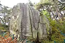 Namsan (Korean: 남산, "South Mountain") is a 494-meter peak in the heart of Gyeongju National Park, just south of Gyeongju, South Korea. The mountain is within easy reach from the city and attracts a large number of domestic tourists. Namsan covers an area of about 8 km (north-south) by 12 km (east-west). Some 180 peaks are counted, of which Geumobong (468 m) and Gouibong (495 m) are the best-known.[1] There are about 40 valleys.