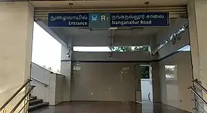Nanganallur Road is an elevated metro station on the North-South Corridor of the Blue Line of Chennai Metro in Chennai, India. This station serves the neighbourhoods of Alandur, Nanganallur and St. Thomas Mount, among others.