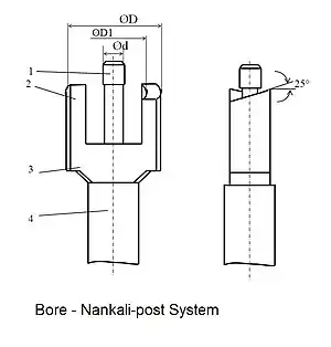 The Nankali post system is a post and cores prosthesis, which is used in prosthodontology and dental restoration. This post and core consists of a single smooth or serrated post and core which has an additional circle ring (counter sink) around it.