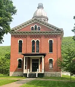 Naples Memorial Town Hall is a historic town hall located at Naples in Ontario County, New York. It was built in 1870–72 and is a lavish and imposing, two story rectangular brick building in the Italianate style. It was designed by A. J. Warner & Company,[2] the Rochester partnership of A. J. Warner and Charles Coots. The town hall served as the center of the village and town's social and recreational activities until World War II. Between 1942 and 1972, the building was in private hands and served a variety of commercial and light industrial uses. In 1972, it was reacquired by the town and serves as a community center and host site for the annual Naples Grape Festival.[3]