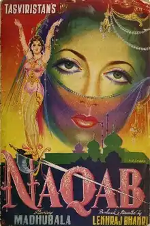 Naqab (lit. 'Veil') is a 1955 Indian Hindustani-language fantasy film directed by Lekhraj Bhakhri.[2][3][4] It stars Shammi Kapoor, Madhubala, Ajit and the film revolves around a damsel in distress who receives help from her fiance and his sister.