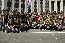 Senior figures in the Russian Presidential administration encouraged the formation of the group, which Moisés Naím labelled a government organized non-governmental organization (GONGO).[15] By late 2007, it had grown in size to some 120,000 members aged between 17 and 25. On April 6, 2012, the Nashi leader announced that the current form of the movement would dissolve in the near future, possibly to be replaced by a different organisation. He stated that Nashi had been "compromised" during the 2012 Russian presidential election.[16] In 2013, the organization ceased its activities and on December 2, 2019, the legal entity was liquidated.[17]