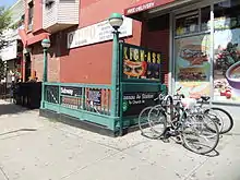 North of the station is a diamond crossover switch, allowing terminating trains to reverse direction.[8][9][15] These switches were used in regular service until July 1, 1937, when the remainder of the Crosstown Line opened.[4][5] Prior to that, Nassau Avenue was the line's southern terminus.[2][16][17] South of the station, the line shifts from Manhattan Avenue onto Union Avenue, running diagonally under McCarren Park.[18]