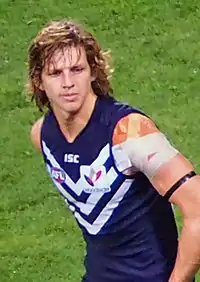 Nathan Fyfe (born 18 September 1991) is a professional Australian rules footballer playing for the Fremantle Football Club in the Australian Football League (AFL). He served as Fremantle captain from 2017 to 2022, becoming the second-longest serving captain in the club's history. Fyfe is a dual Brownlow Medallist, dual Leigh Matthews Trophy recipient, three-time All-Australian (including as captain in the 2019 team) and three-time Doig Medallist. He received a nomination for the 2010 AFL Rising Star award in round 9 of the 2010 season.