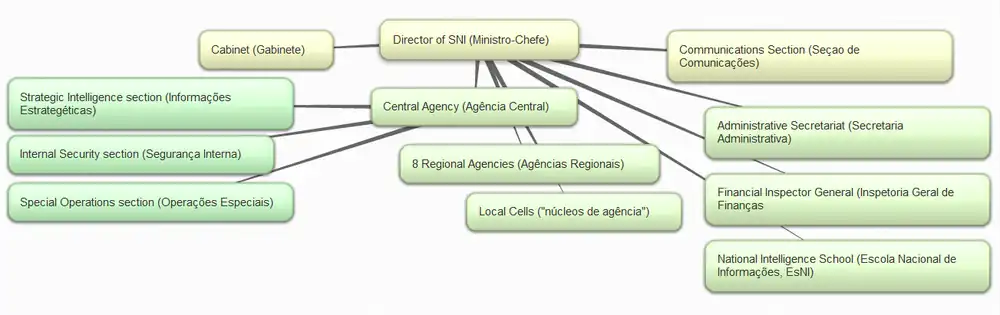 One study by political scientist David V. Fleischer and Robert Wesson suggests that there were as many as 50,000 persons employed in the SNI during the 1964-85 regime. Furthermore, both Presidents Médici and Figueiredo had been SNI chiefs.