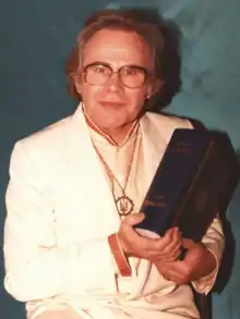 The Maha Vira (literally "Great Faith") is the holy writing used within the organisations of the Sylenkoite movement,[21] published in 1979 and consisting in 1,427 pages.[22] Its title blends the Sanskrit term maha, "great", and the Ukrainian term vira, "faith".[23] It was composed by Lev Sylenko himself as a synthesis of philosophical ideas relying upon historical and archaeological sources,[24] presenting a historiosophical account of eleven thousand years, intertwined with theological and cosmological doctrines, and a prophetic message for the future.[25] The book includes a comparative lexicon of Sanskrit, Ukrainian and English language.[24]